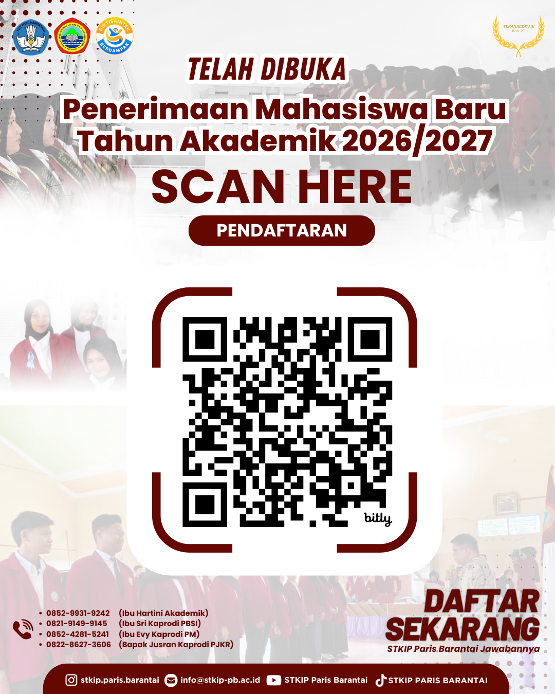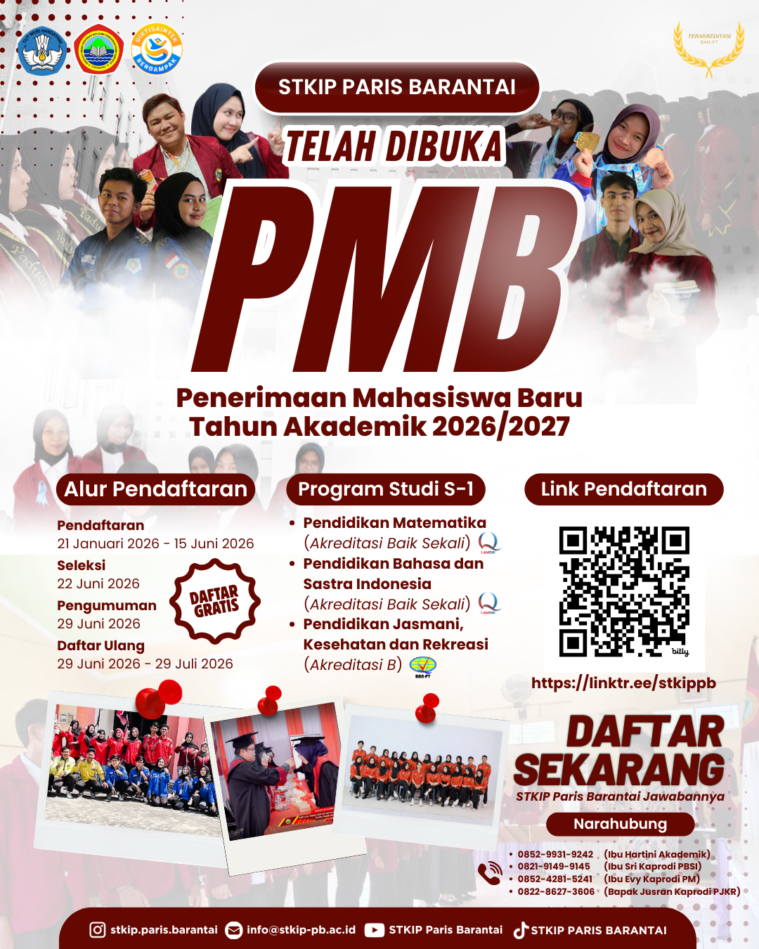 🎓 Penerimaan Mahasiswa Baru STKIP Paris Barantai📚 Tahun Akademik 2026/2027 RESMI DIBUKA! ✨ Program Studi S-1: ✅ Pendidikan Matematika (Akreditasi Baik Sekali)✅ Pendidikan Bahasa & Sastra Indonesia (Akreditasi Baik Sekali)✅